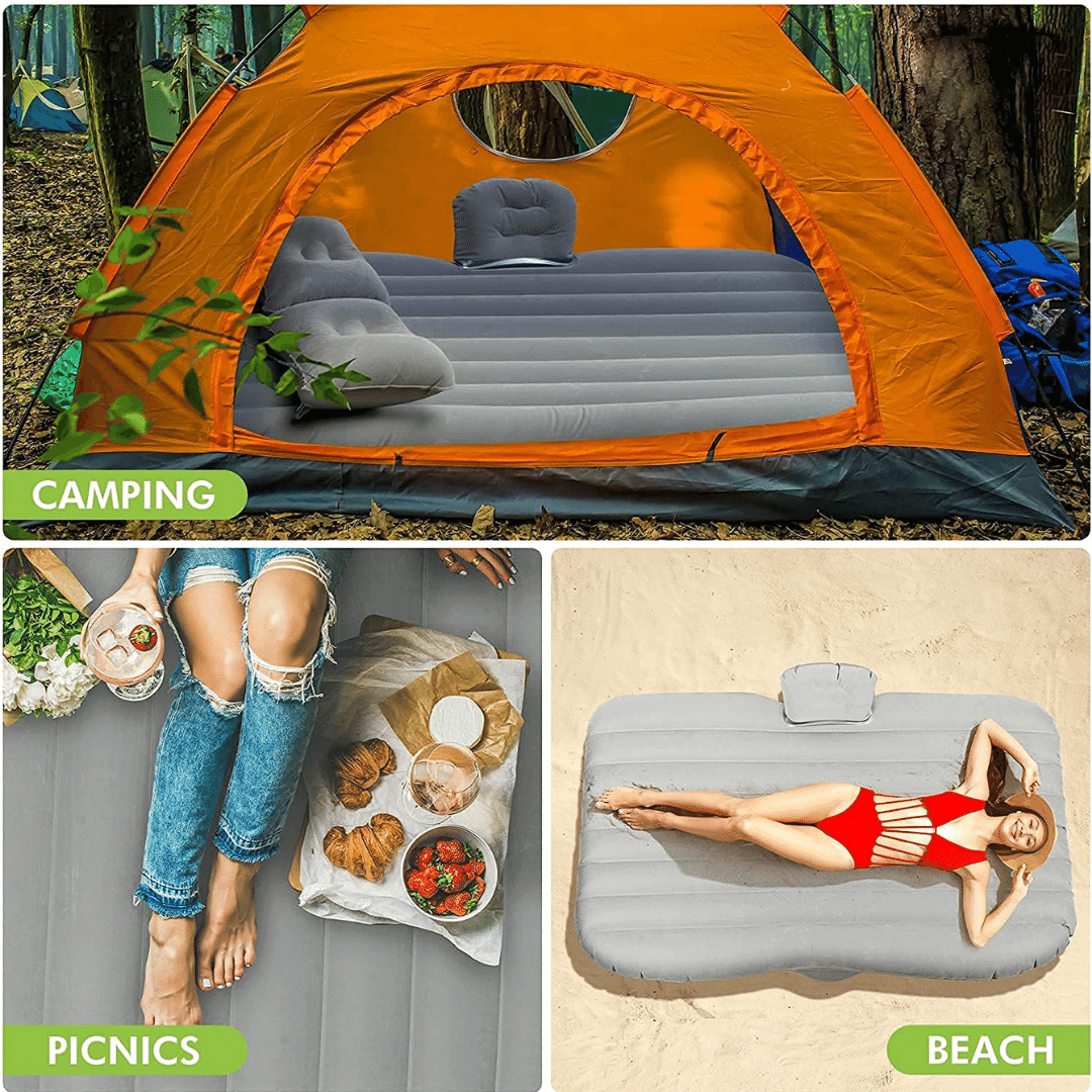 Our Inflatable Air Car Mattress comes with a car-powered quick-fill electric pump for inflating airbeds. 12-volt DC power plug for connecting to car power outlets.